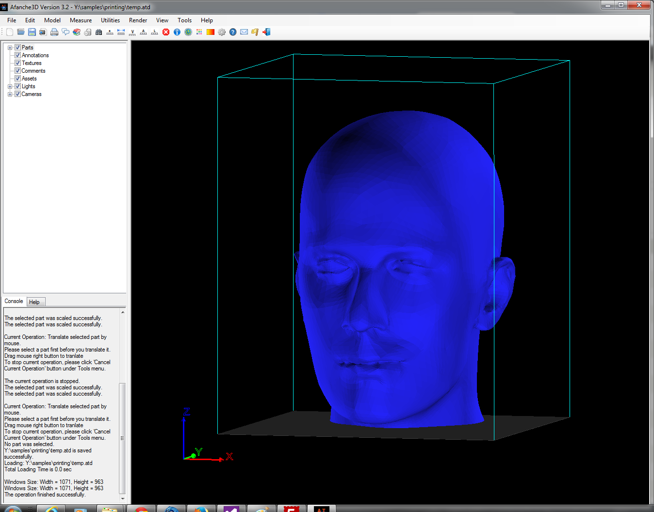 After the auto fitting operation, the following picture shows the result of the operation. You can see the model is inside 3D printer build volume perfectly.