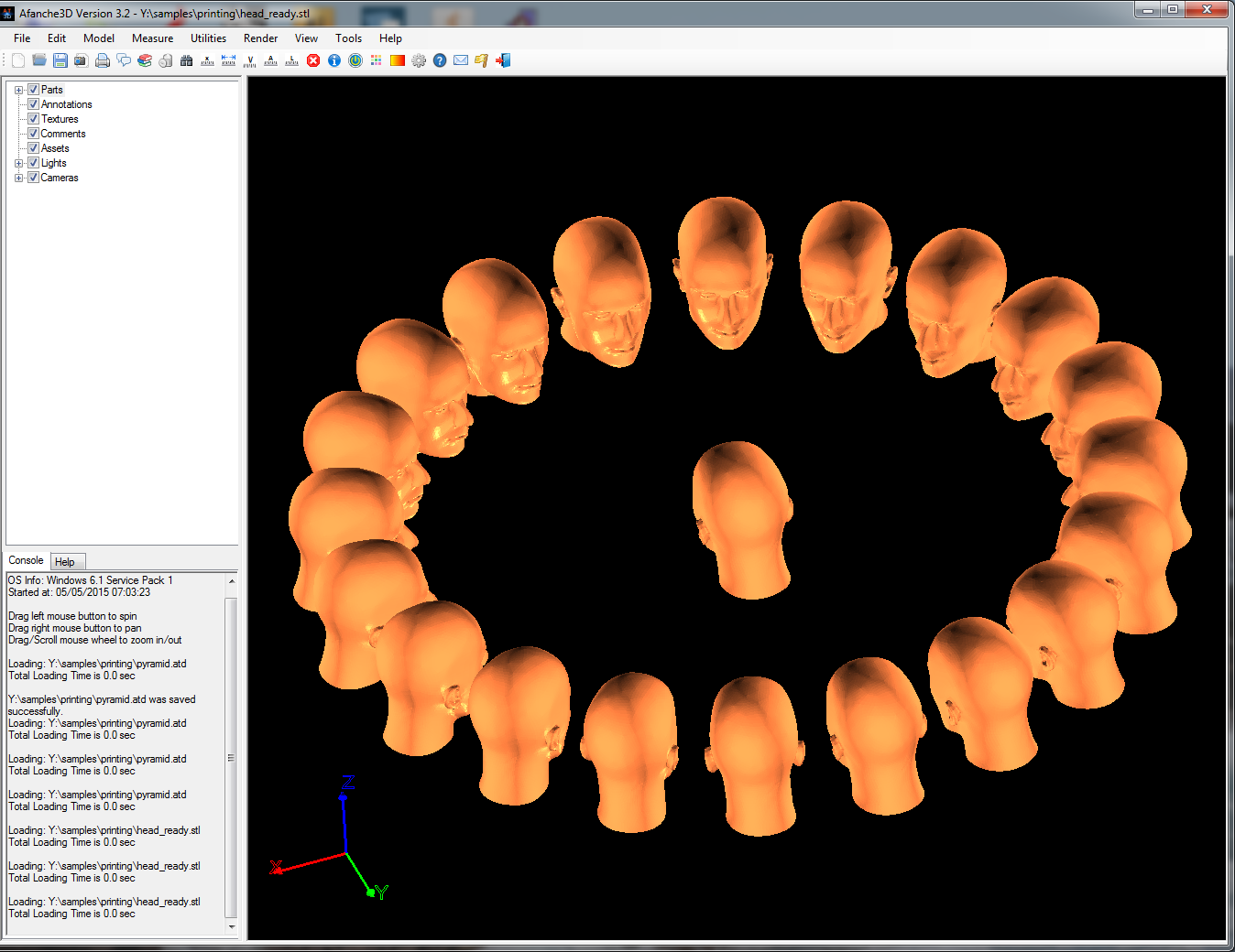 The following pictures show more duplication examples for a 3D head model