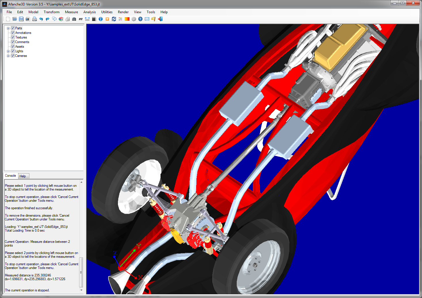 The following pictures show examples of 3D JT data displayed in Afanche3D