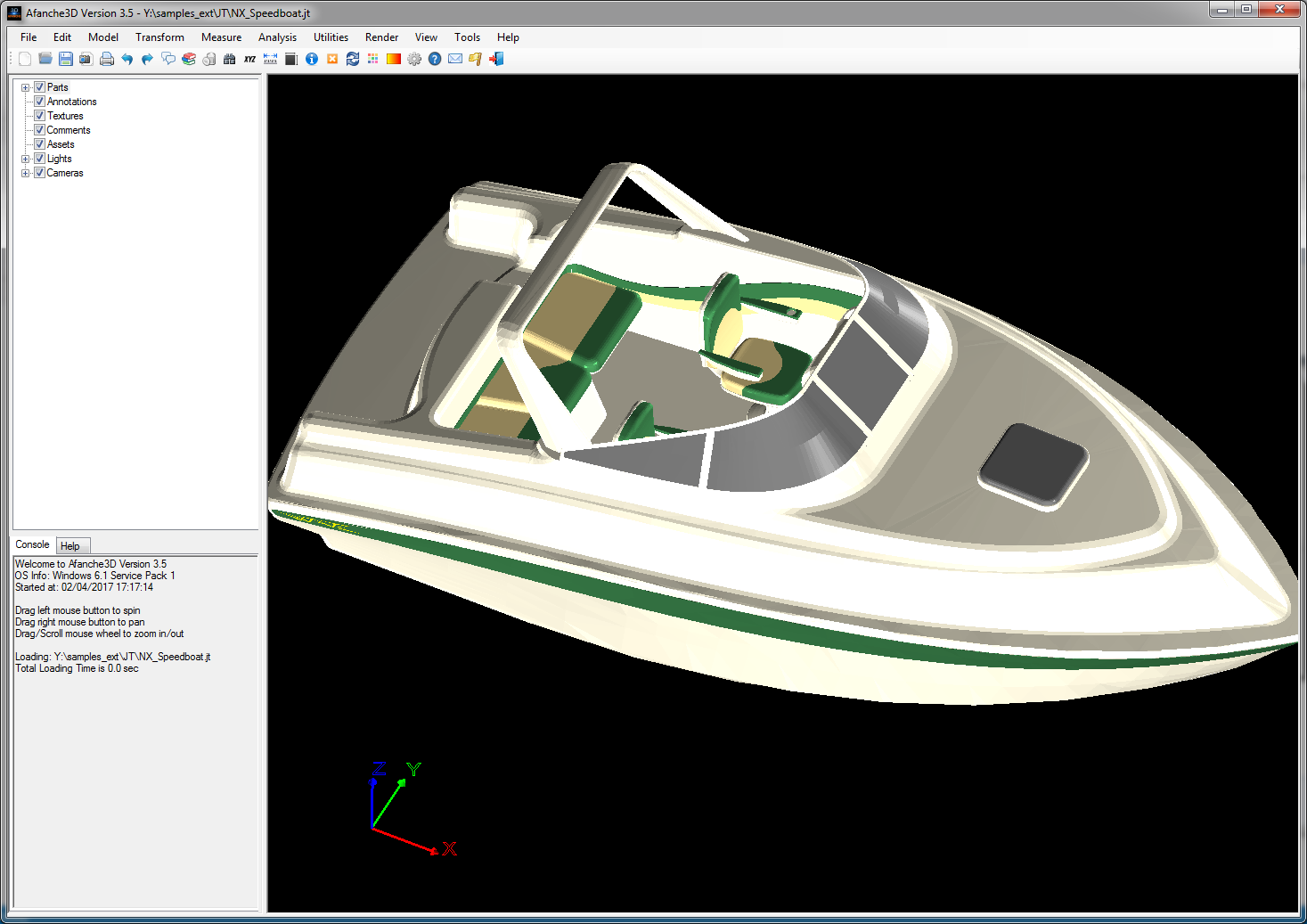 Afanche3D supports all popular JT versions, including version 8, version 9 and version 10.