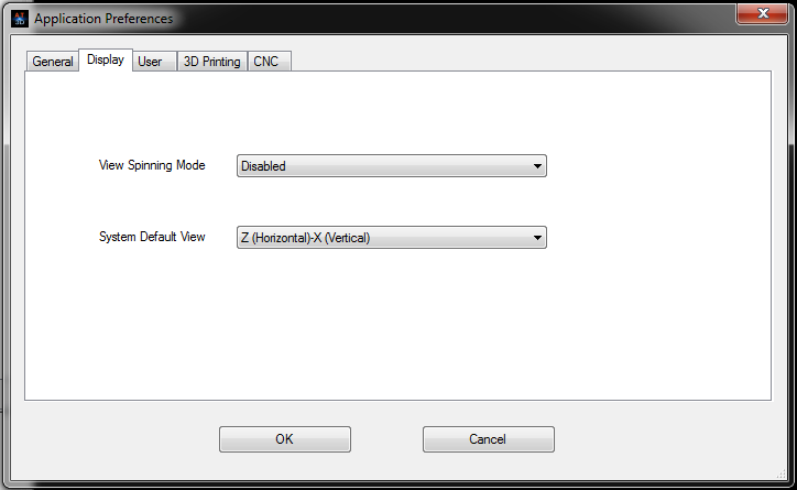Then, click "Display" tab of the dialog, change "System Default View" to "Z (Horizontal) - X (Vertical)", change "View Spinning Mode" to "Disabled". After the change, the tab should look like the following picture: